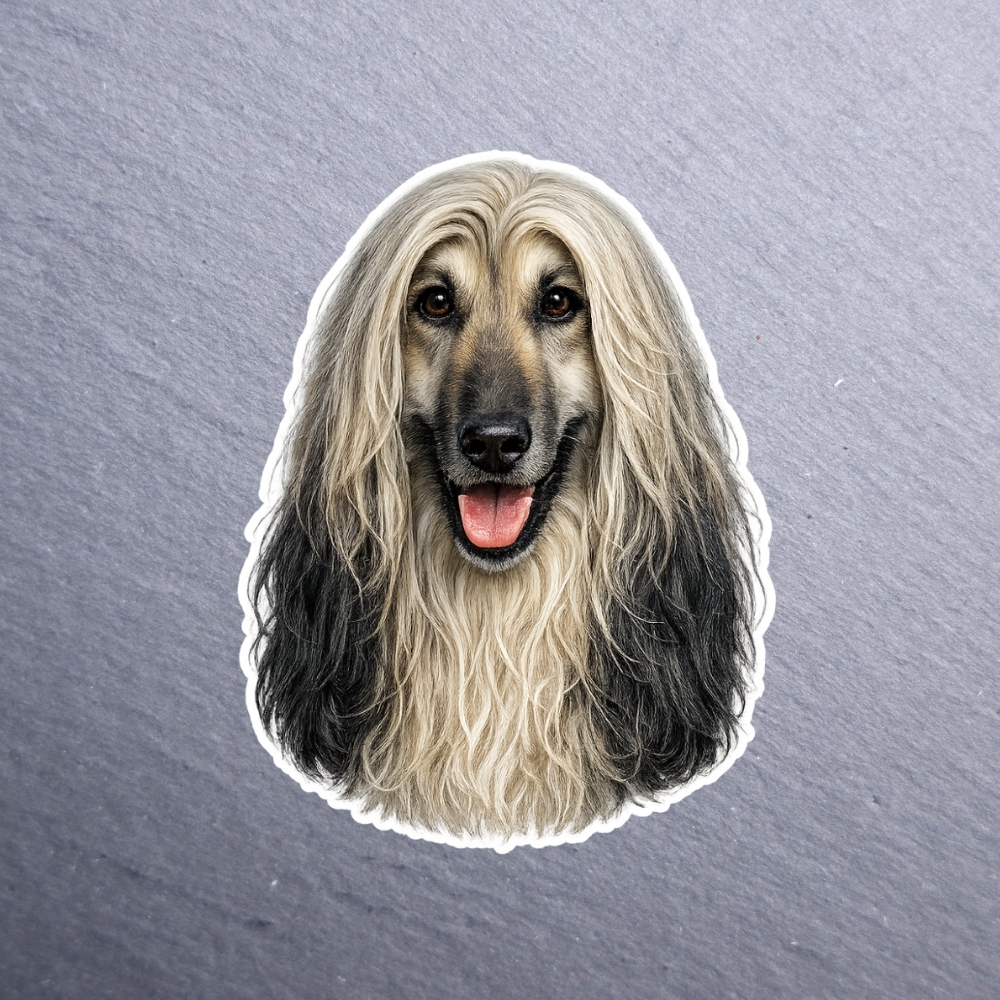 Afghan Hound Sticker. These stickers are made with printable vinyl with a vinyl top coat that is scratch-resistant and water resistant. Put one on your phone case, laptop, iPad, hard cooler; the possibilities are endless.