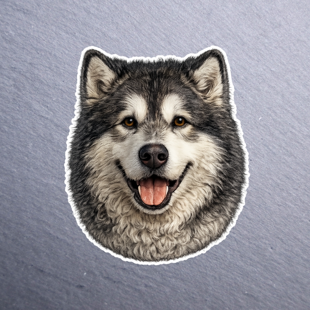 Alaskan Malamute Sticker. These stickers are made with printable vinyl with a vinyl top coat that is scratch-resistant and water resistant. Put one on your phone case, laptop, iPad, hard cooler; the possibilities are endless.