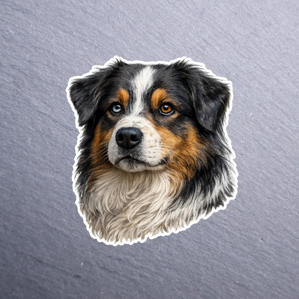 Australian Shepherd Sticker. These stickers are made with printable vinyl with a vinyl top coat that is scratch-resistant and water resistant. Put one on your phone case, laptop, iPad, hard cooler; the possibilities are endless.