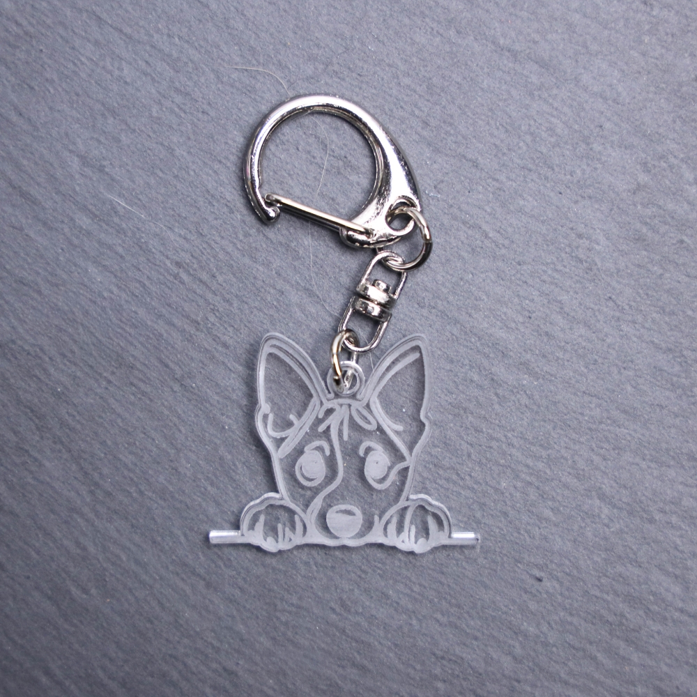 Basenji Bag Tag. This bag tag is made with engraved acrylic. Comes with lobster clasp topper that easily hooks to a bag, zippers, keychains, and lanyards for fun display and swivels. Clear opposite backside.