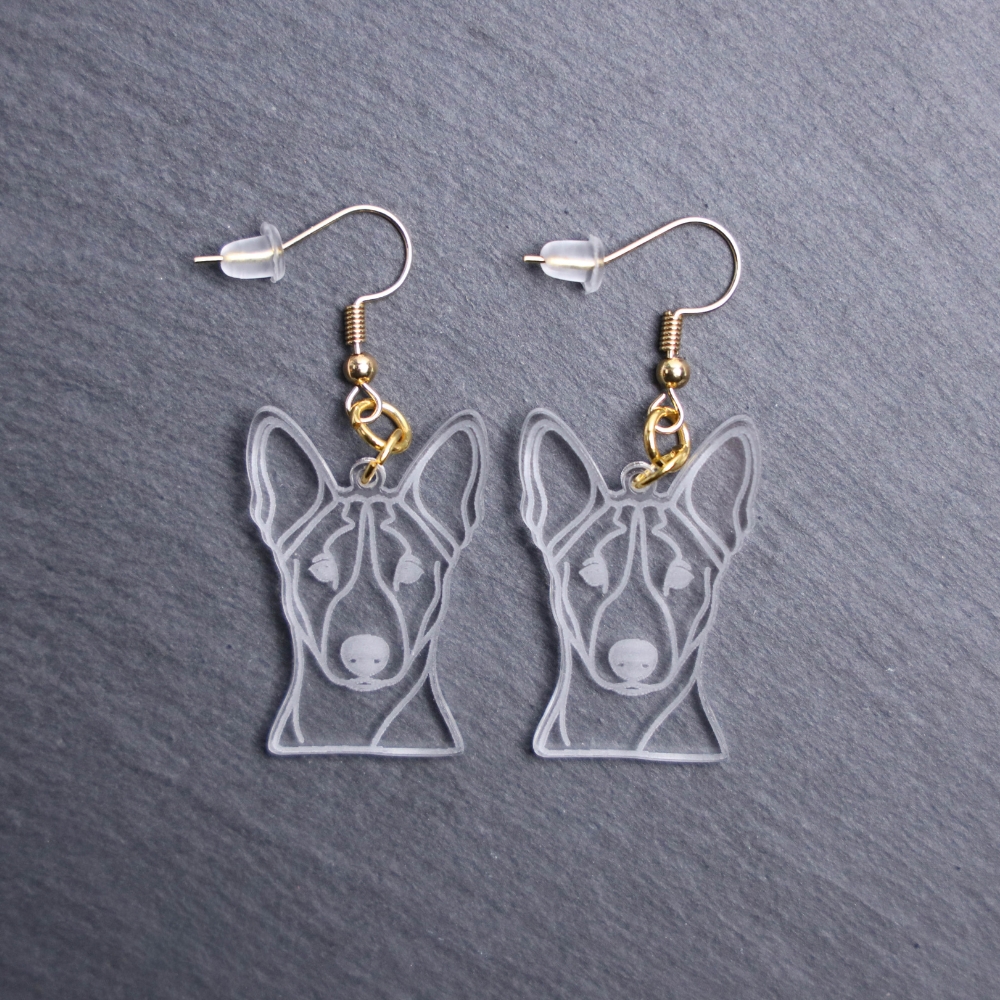 Basenji Earrings. These earrings are made with engraved acrylic. Comes with gold hooks that is nickel free. Adorable dangle earrings for dog lovers.