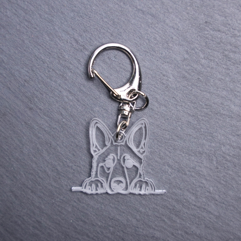 Belgian Shepherd Bag Tag. This bag tag is made with engraved acrylic. Comes with lobster clasp topper that easily hooks to a bag, zippers, keychains, and lanyards for fun display and swivels. Clear opposite backside.