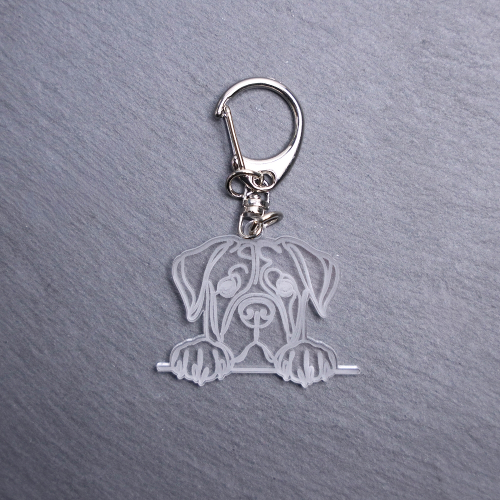 Cane Corso Bag Tag. This bag tag is made with engraved acrylic. Comes with lobster clasp topper that easily hooks to a bag, zippers, keychains, and lanyards for fun display and swivels. Clear opposite backside.