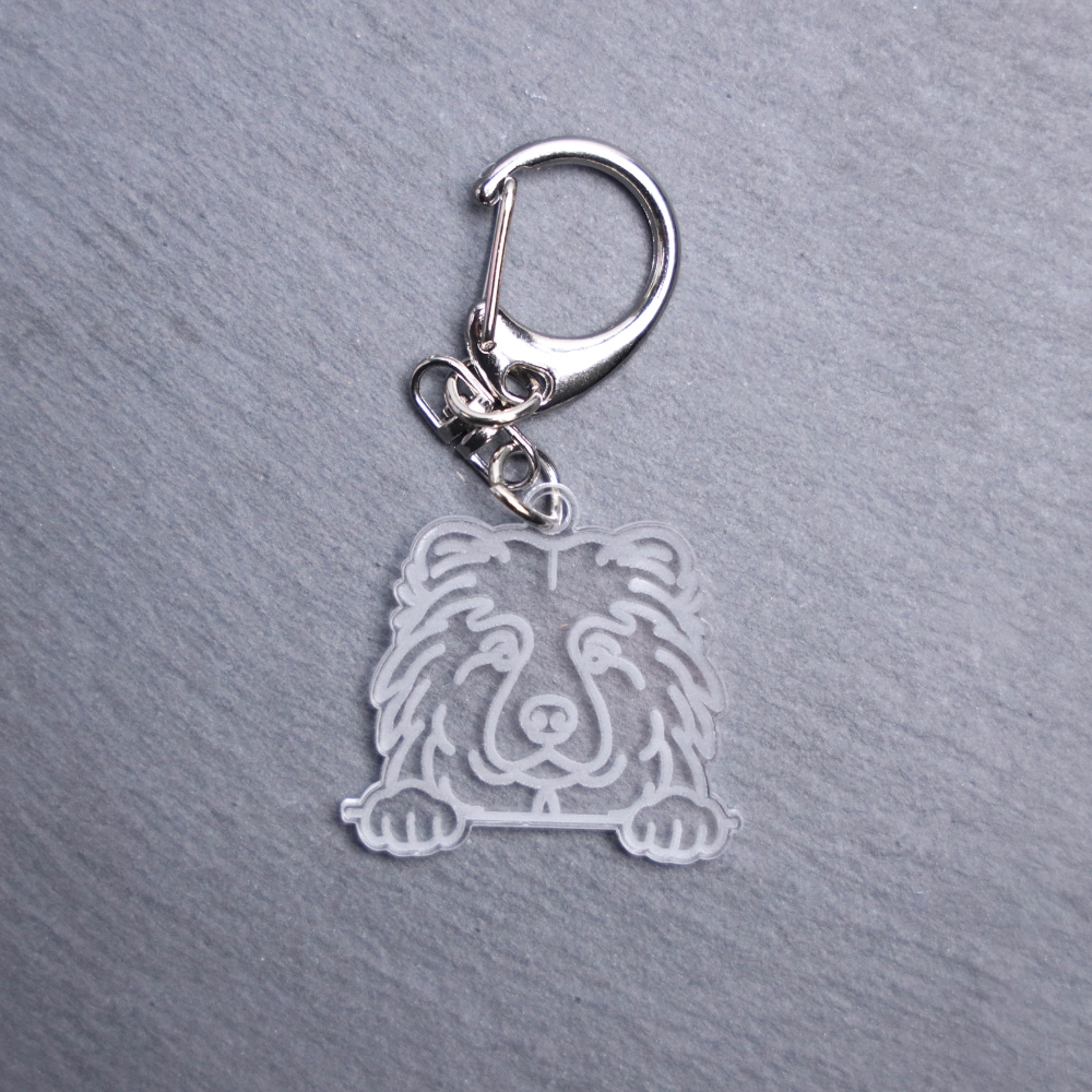 Eurasier Bag Tag. This bag tag is made with engraved acrylic. Comes with lobster clasp topper that easily hooks to a bag, zippers, keychains, and lanyards for fun display and swivels. Clear opposite backside.