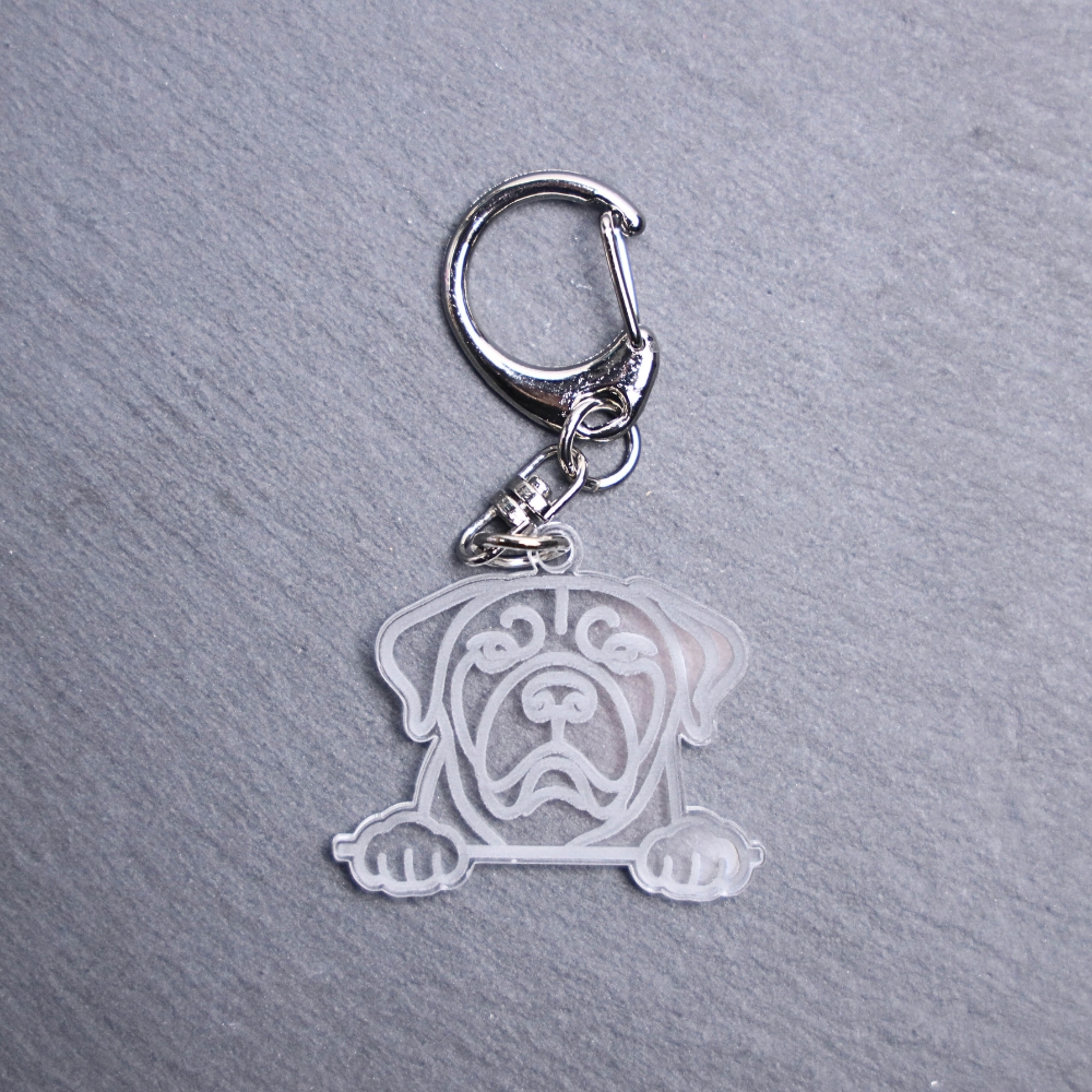 Fila Brasileiro Bag Tag. This bag tag is made with engraved acrylic. Comes with lobster clasp topper that easily hooks to a bag, zippers, keychains, and lanyards for fun display and swivels. Clear opposite backside.