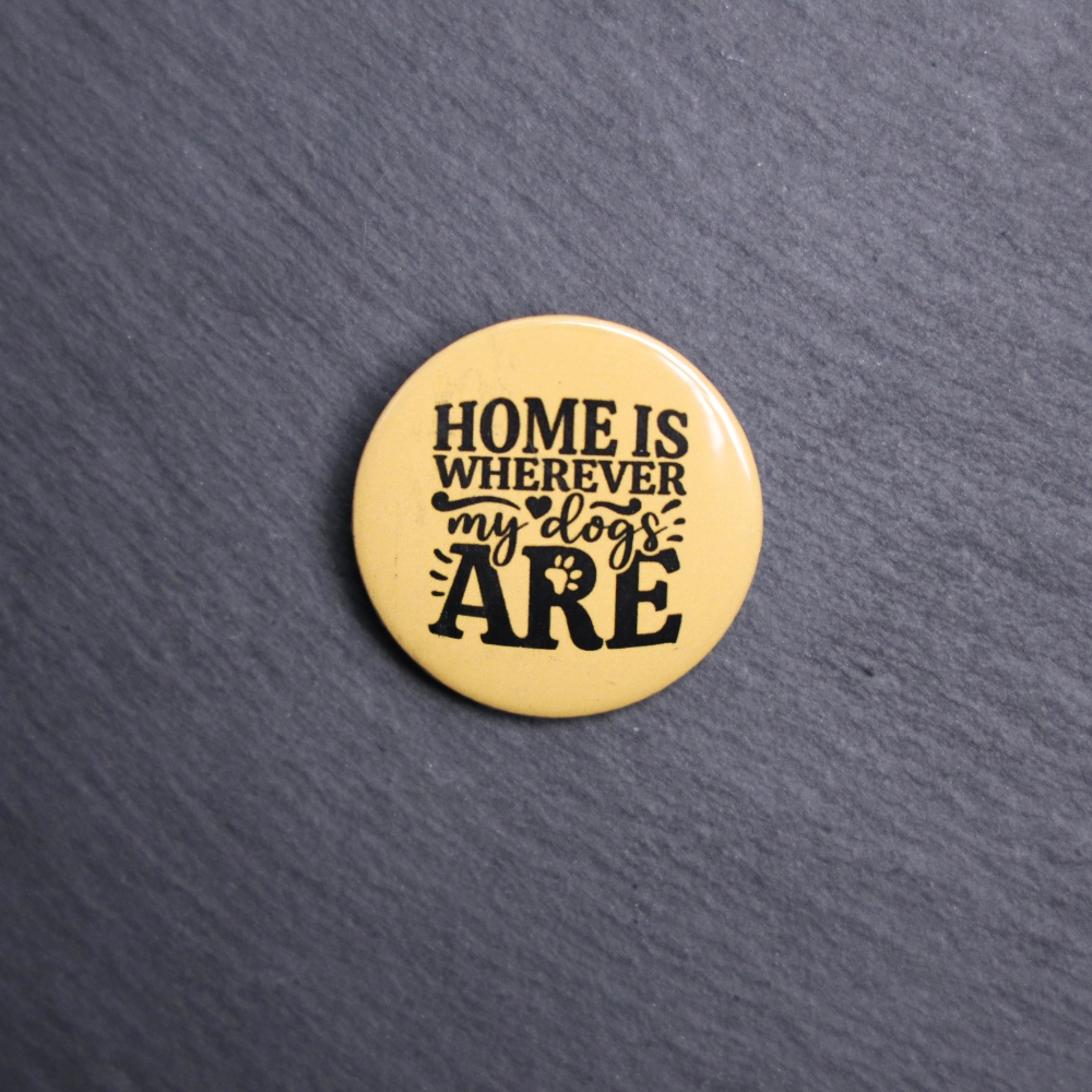 Home Is Wherever My Dogs Are Button. These buttons are made with photo paper, metal round, and metal backing. These buttons are vibrant and fun to use on bags or vests.