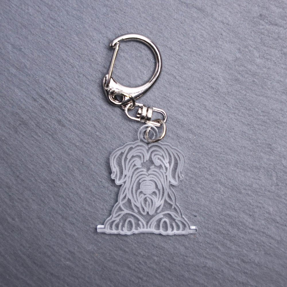 Irish Wolfhound Bag Tag. This bag tag is made with engraved acrylic. Comes with lobster clasp topper that easily hooks to a bag, zippers, keychains, and lanyards for fun display and swivels. Clear opposite backside.