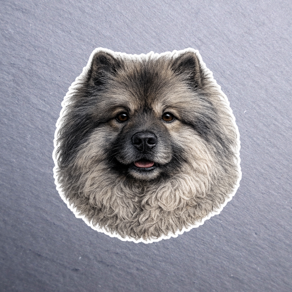 Keeshond Sticker. These stickers are made with printable vinyl with a vinyl top coat that is scratch-resistant and water resistant. Put one on your phone case, laptop, iPad, hard cooler; the possibilities are endless.