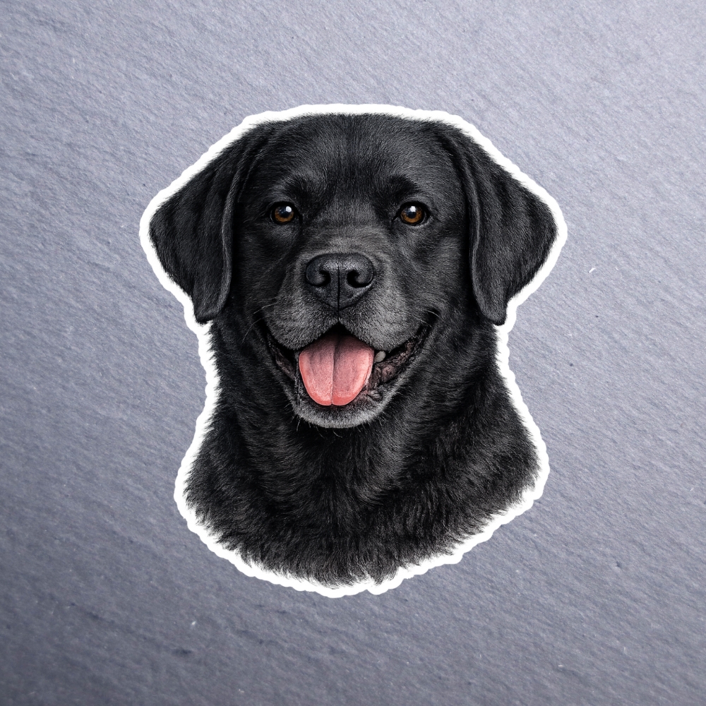 Labrador Retriever Black Sticker. These stickers are made with printable vinyl with a vinyl top coat that is scratch-resistant and water resistant. Put one on your phone case, laptop, iPad, hard cooler; the possibilities are endless.