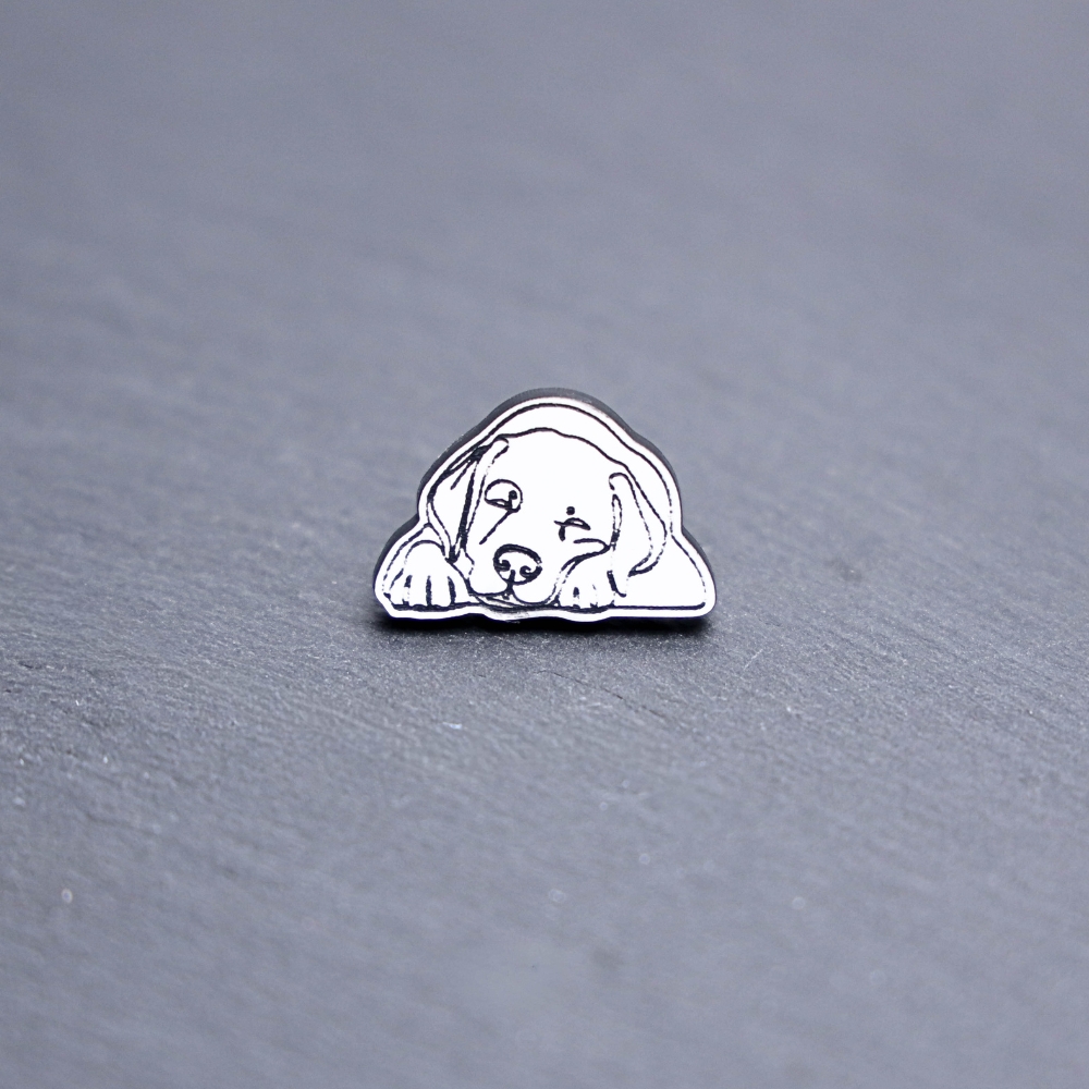 Labrador Retriever Engraved Acrylic Pin. These acrylic pins are made with engraved cast acrylic. These pins are white and black with a black pin back.