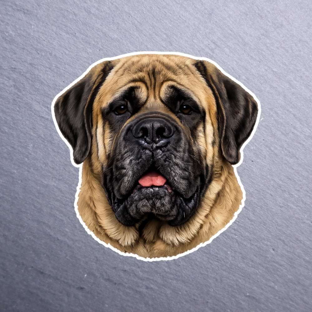 Mastiff Sticker. These stickers are made with printable vinyl with a vinyl top coat that is scratch-resistant and water resistant. Put one on your phone case, laptop, iPad, hard cooler; the possibilities are endless.