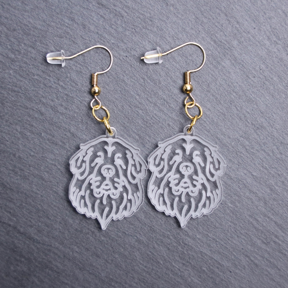 Newfoundland Earrings. These earrings are made with engraved acrylic. Comes with gold hooks that is nickel free. Adorable dangle earrings for dog lovers.