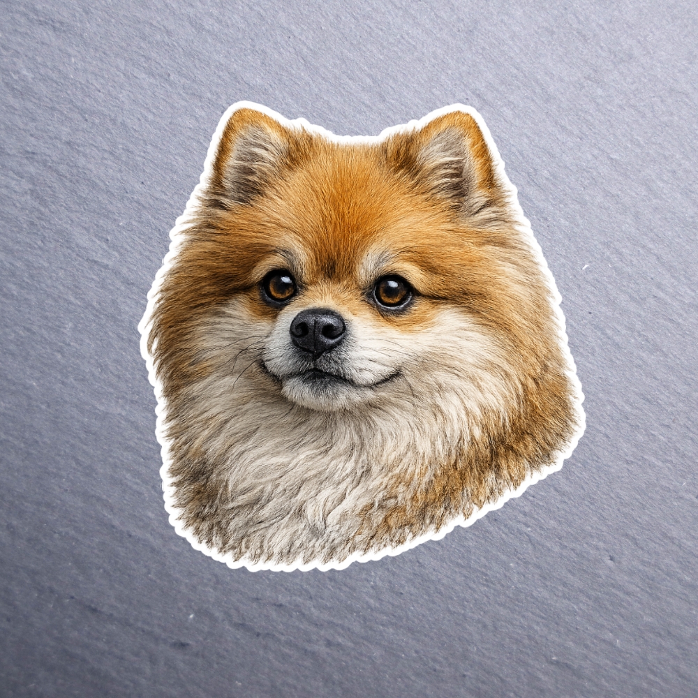 Pomeranian Sticker. These stickers are made with printable vinyl with a vinyl top coat that is scratch-resistant and water resistant. Put one on your phone case, laptop, iPad, hard cooler; the possibilities are endless.