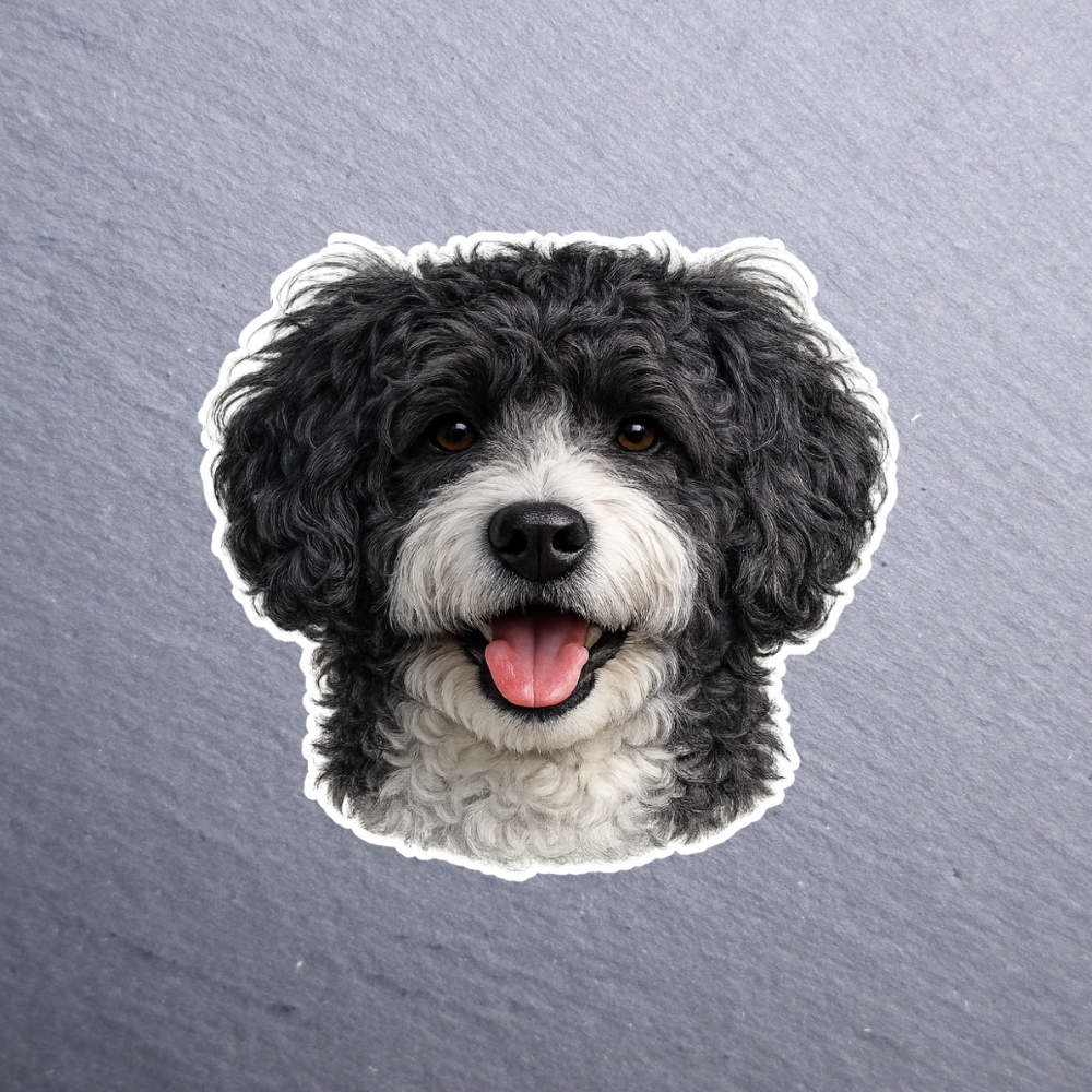 Portuguese Water Dog Sticker. These stickers are made with printable vinyl with a vinyl top coat that is scratch-resistant and water resistant. Put one on your phone case, laptop, iPad, hard cooler; the possibilities are endless.