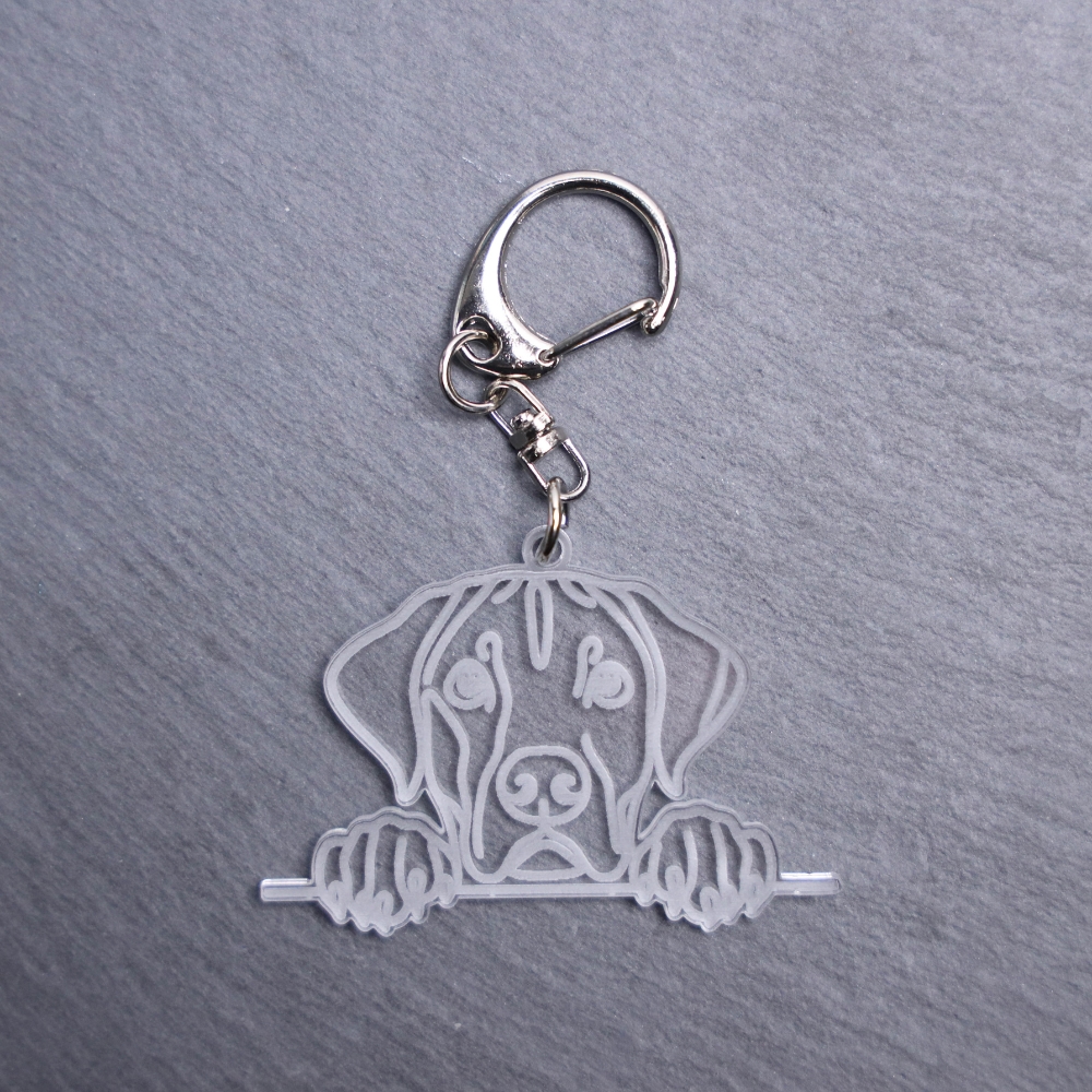Rhodesian Ridgeback Bag Tag. This bag tag is made with engraved acrylic. Comes with lobster clasp topper that easily hooks to a bag, zippers, keychains, and lanyards for fun display and swivels. Clear opposite backside.