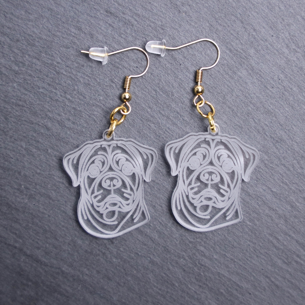 Rottweiler Earrings. These earrings are made with engraved acrylic. Comes with gold hooks that is nickel free. Adorable dangle earrings for dog lovers.
