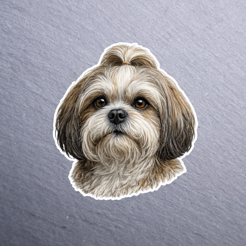 Shih Tzu Sticker. These stickers are made with printable vinyl with a vinyl top coat that is scratch-resistant and water resistant. Put one on your phone case, laptop, iPad, hard cooler; the possibilities are endless.